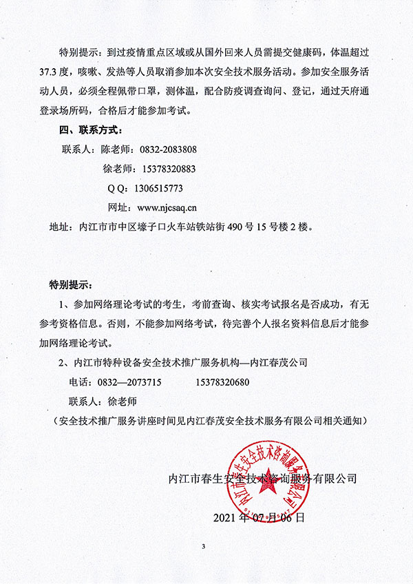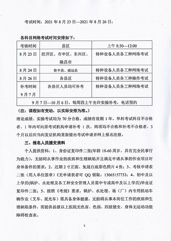 2021年春生公司06期特種設備作業(yè)人員考核時間安排
