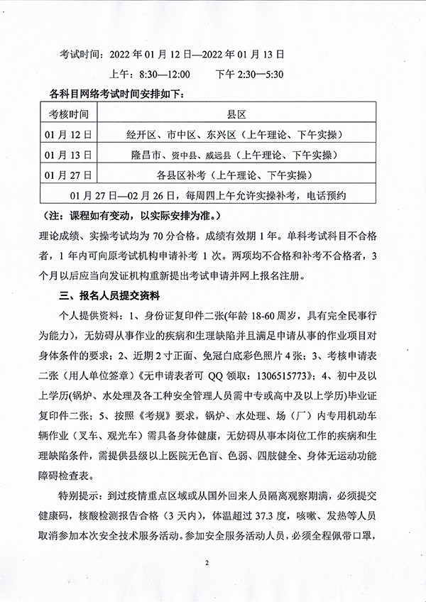 2022年春生公司01期特種設備作業(yè)人員考核時間安排