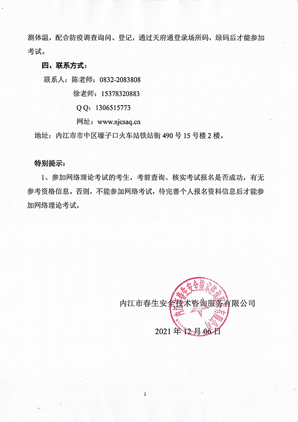 2021年春生公司06期特種設備作業(yè)人員考核時間安排