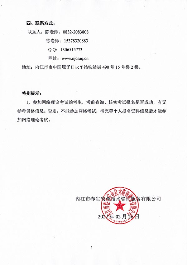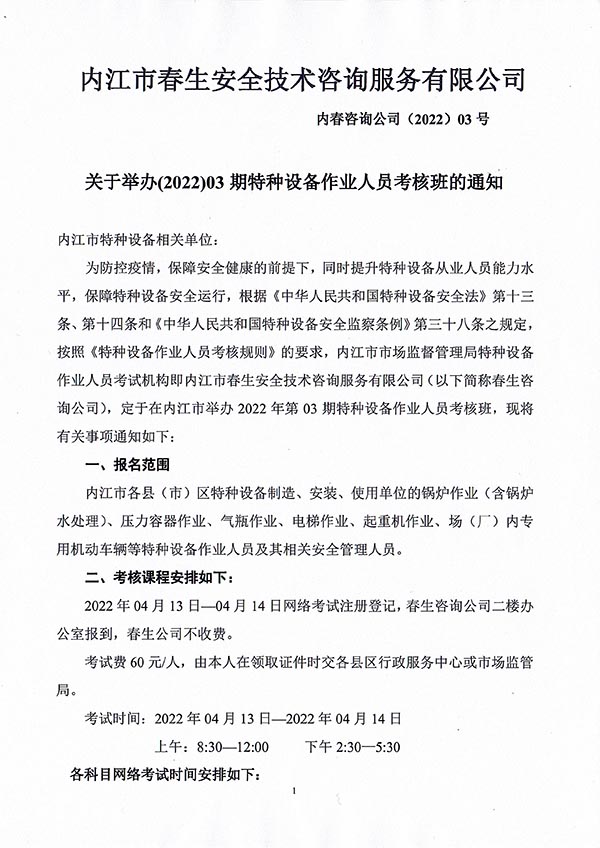 2022年春生公司03期特種設(shè)備作業(yè)人員考核時(shí)間安排