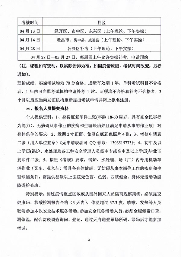 2022年春生公司02期特種設(shè)備作業(yè)人員考核時(shí)間安排