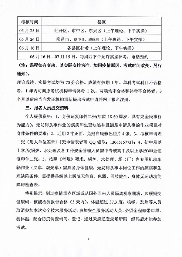 2022年春生公司06期特種設(shè)備作業(yè)人員考核時(shí)間安排
