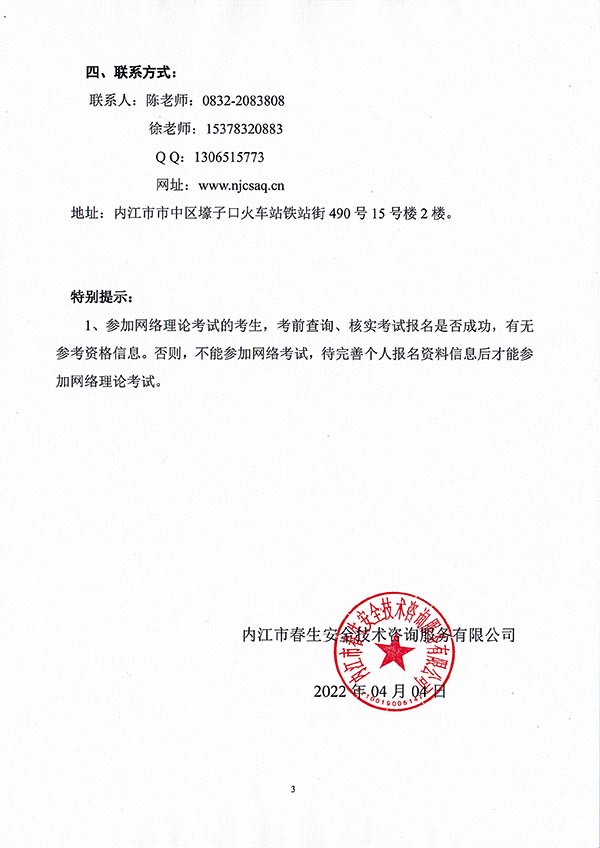2022年春生公司03期特種設(shè)備作業(yè)人員考核時(shí)間安排