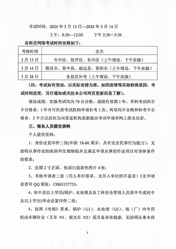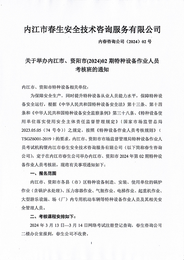 關于舉辦內(nèi)江市、資陽市(2024)02期特種設備作業(yè)人員考核班的通