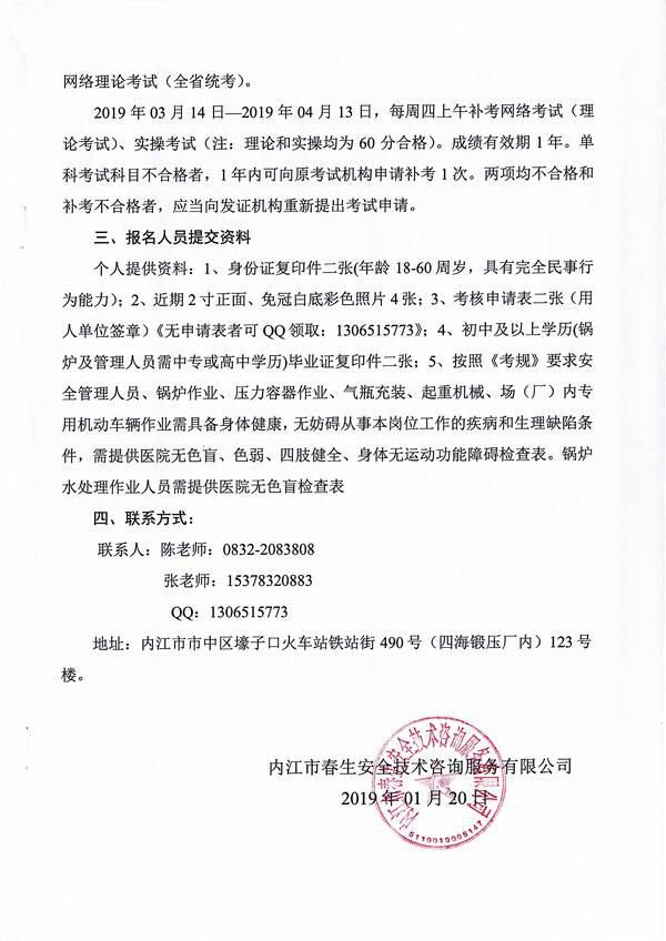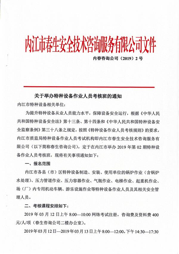 2019年第一期特種設備作業(yè)人員考核培訓班的通知
