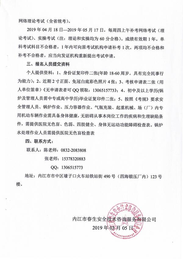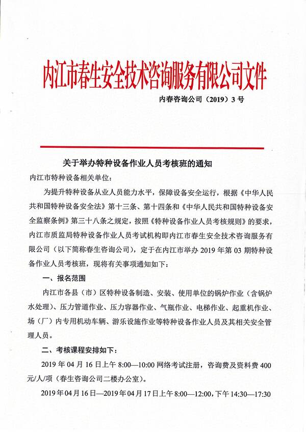 2019年第二期特種設(shè)備作業(yè)人員考核培訓(xùn)班的通知