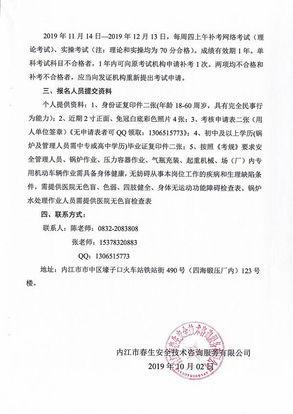 2019年第八期特種設(shè)備作業(yè)人員考核培訓(xùn)班的通知