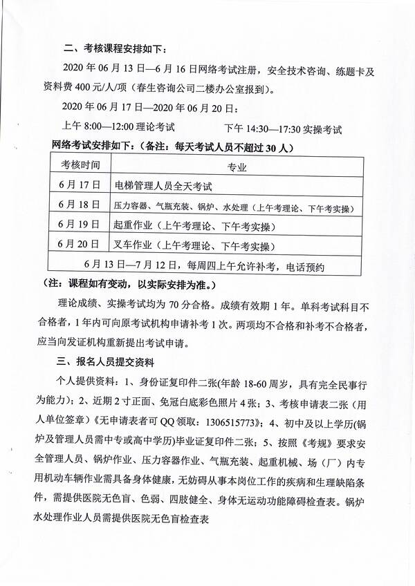 2020年第二期特種設備作業(yè)人員考核培訓班的通知