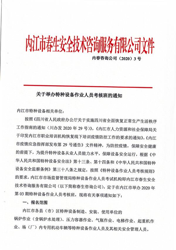 2020年第三期特種設備作業(yè)人員考核培訓班的通知