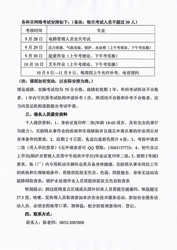 2020年第四期特種設(shè)備作業(yè)人員考核培訓(xùn)班的通知
