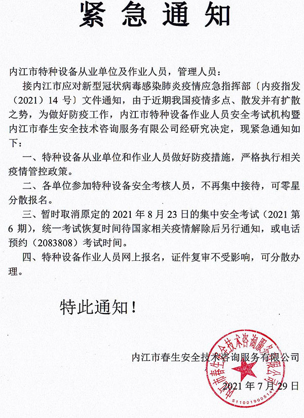 疫情防控緊急通知